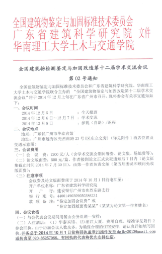 全國建筑物檢測鑒定與加固改造第十二屆學(xué)術(shù)交流會第02號通知